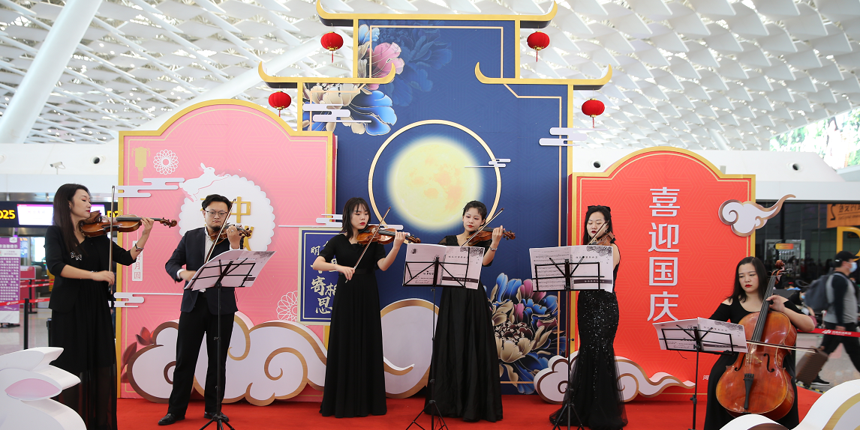 在中秋節、國慶節到來之際,為弘揚中華優秀傳統文化,河南機場集團近日在鄭州機場T2航站樓出發大廳舉行“喜迎國慶 中秋有禮”文化活動,向南來北往的旅客展示傳統節日特色民俗
