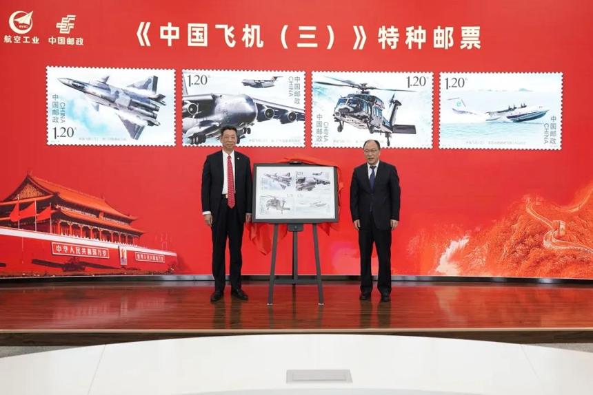 在北京舉行的首發儀式上,中國航空工業集團黨組副書記李本正,中國郵政集團副總經理、黨組成員康寧共同為郵票首發揭幕。中國集郵有限公司同步發行4枚《中國飛機(三)》首日封。