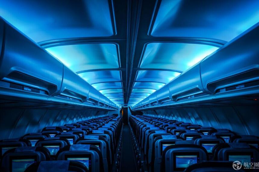 冰島 航空推出的這架Vatnajökull彩繪飛機機型是波音757-200,不僅外觀冷酷,連機艙內部都有看點。機艙內的電子LED藍光,其色調是為了表現出冰洞里面的氛圍,讓旅客如置身該處。連杯子、紙巾、清潔袋上面都有冰河的圖案。