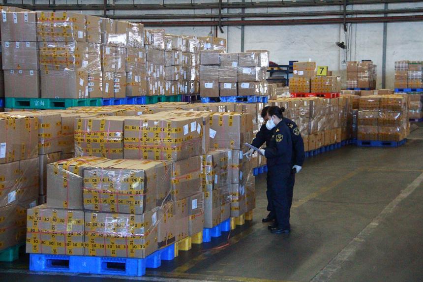 海關(guān)關(guān)員對跨境電商出口貨物進(jìn)行巡查
