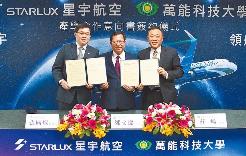 臺灣萬能科技大學看準航空產業趨勢及配合周邊發展,11月8日在桃園市長鄭文燦見證下,由校長莊暢與星宇航空董事長張國煒簽署產學合作意向書,共同培訓航空實務專業人才。