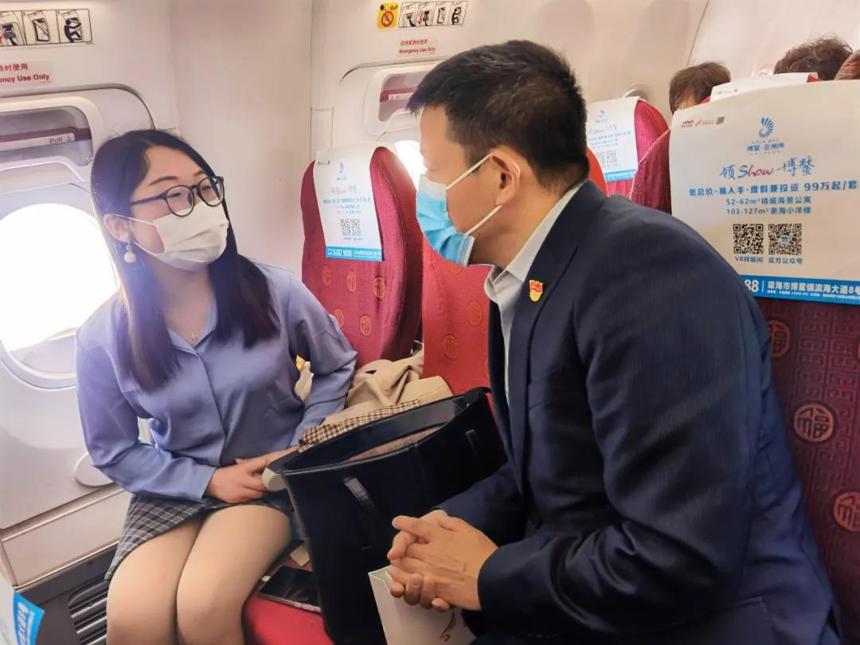機上旅客紛紛表達祝福,家在上海的旅客吳玉琴表示自己非常幸運能夠在上班第一天乘坐上海博鰲開航一周年主題航班,今天是她在位于博鰲樂城國際醫療旅游先行區一家醫療單位報到的日子;旅客王緩是上海某律所的實習生,在即將舉辦的博鰲亞洲論壇擔任翻譯服務志愿者,她表示乘坐本次主題航班有著特殊的紀念意義。