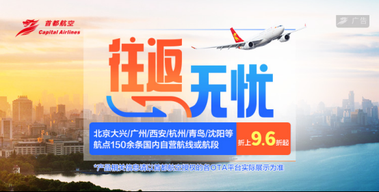 年終即將到來之際,為了回饋旅客的支持,首都航空最新推出“往返無憂”機票優惠產品,即購買首都航空指定日期及航線的往返機票可享受折扣優惠。