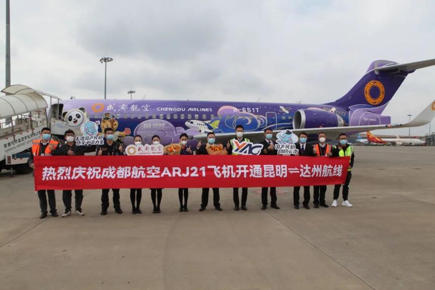 國產飛機ARJ21翱翔云南 成都航空開通昆明=達州航線