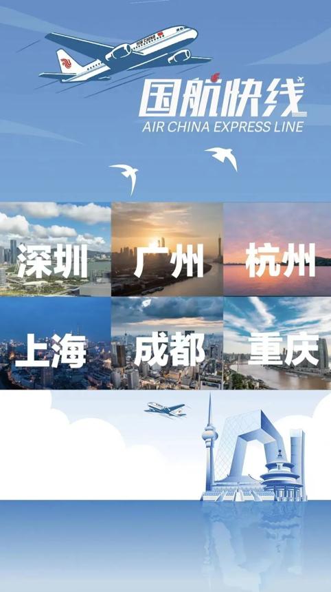 “愉快升級 悅享旅程”。國航快線提供了更加優質的空中服務。北京首都-上海虹橋、北京首都-深圳寶安等六條快線優先配備寬體機執飛。空中除配備快線專屬菜單及屬地特色美食外,國航A359機型全艙配備地空互聯機上Wi-Fi,打造更加舒適愉悅的飛行體驗。托運行李全流程追蹤服務已全面覆蓋快線航班,旅客可通過中國國航APP查詢安檢、分揀、裝車、裝機、到達等多個行李狀態信息,實時掌握行李軌跡,近期國航還將推出行李到家服務。此外,為回饋鳳凰知音會員,即日起到2023年底,乘坐快線航班的知音會員可獲額外定級航段獎勵,享受更豐富的會員權益。