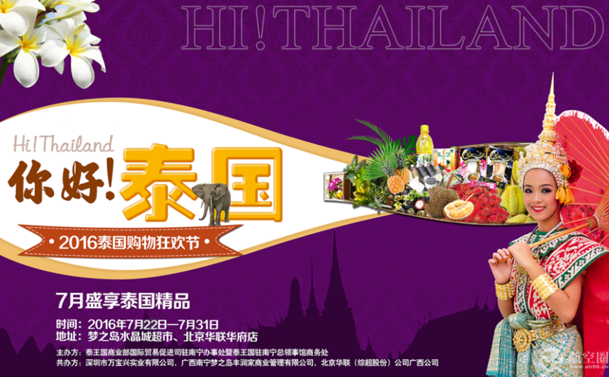 航空圈7月22日訊 7月22日晚上,為期10天的2016泰國購物狂歡節(jié)在廣西南寧兩家商場開幕,南寧市民夏季不出國就可以購買到眾多泰國特色商品。