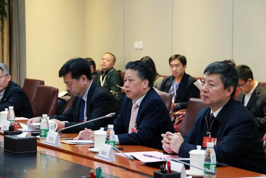 與會(huì)人大代表羅勝聯(lián)(中),樊會(huì)濤(右),彭建武(左)。