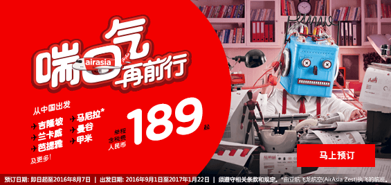 “亞洲航空今天的成績也離不開中國乘客的支持。在亞航進入中國的這11年里面,我親身見證了到中國乘客對亞航的熱情和支持。這次促銷正是對往返中國乘客最好的回饋。2016年剛剛過去一半,避開暑假學生出游高峰,工薪一族不妨忙里偷閑,鎬賞自己和家人半年的辛勤付出。飛到東南亞目的地盡情享受陽光、海灘、美食和購物帶來的樂趣。”她補充到。