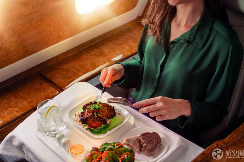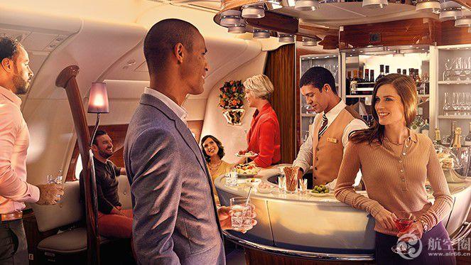 在阿聯酋航空的航班上,商務艙乘客可享用到具有當地風味的定制菜品,以及免費贈送的香檳和頂級烈酒。除沙特航線外,阿聯酋航空提供各式獨家的紅葡萄酒、白葡萄酒和波特酒,酒單依據航線而定。在阿聯酋航空所有A380機型上,在上層商務艙的后方,配有頭等艙和商務艙乘客專屬的機上行政酒廊,為乘客提供了一個輕松愜意的環境去享受上等好酒和美味點心。此外,阿聯酋航空連續12年蟬聯 “全球最佳機上娛樂”大獎的ice(信息、通訊、娛樂)數碼寬屏娛樂系統提供超過2,500個點播頻道。不僅如此,在大部分航班上,乘客還可使用機上Wi-Fi服務, 10MB免費流量用完后,只需以1美元即可購買500MB流量。