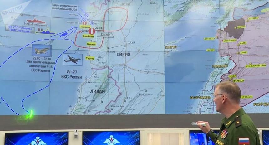 科納申科夫表示,以色列空軍向俄方提供了其9月17日對敘虛假攻擊地點信息,使俄方誤入迷途,未能將伊爾-20引導至安全區,以方此舉導致伊爾-20被擊落。