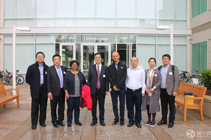 張延明與蘋果哦你公司全球運營副總裁薩比赫•汗和Priya Balasubramaniam副總裁合影