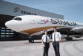 第一架采用阿聯酋航空最新涂裝的飛機是A6-EOE,這是一架空客A380飛機,經過改造后于本周由阿聯酋航空工程公司推出。它的首秀被安排在3月17日飛往慕尼黑的EK51航班上。