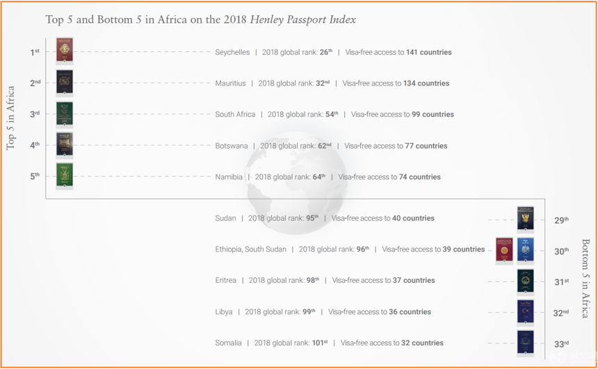 非洲最好用護照是塞舌爾,有141個免簽國家,毛里求斯第二名,南非排第三。