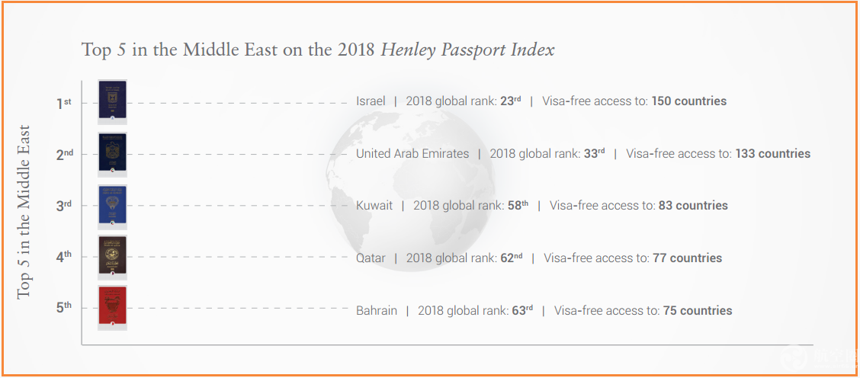 中東地區以色列護照最好用,2018年有155個免簽國,第二名是近年來大出風頭的阿聯酋,133個免簽國。