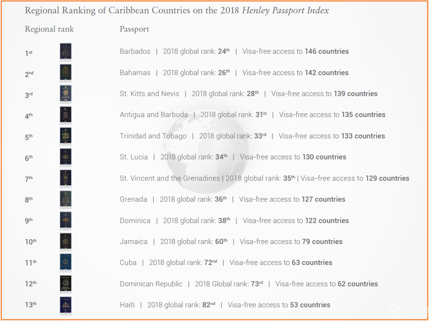 加勒比地區護照好用排行榜,巴巴多斯、巴哈馬位居前兩名
