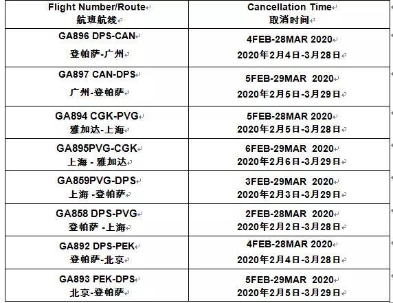 另外,據印尼國家航空——印尼鷹航2月3日消息,該航空飛往中國內地(北京、上海、廣州、西安、鄭州)的航班將暫時全部取消。