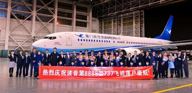 航空圈訊 2月1日是中國農歷臘月二十三,中國許多地區傳統風俗中的“小年”。在這個喜慶的日子里,波音公司出廠的第8888架737飛機抵達廈門機場,正式入列廈航機隊。