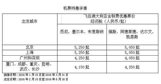 新航澳洲機票特惠 中國游客赴澳含稅4050元起