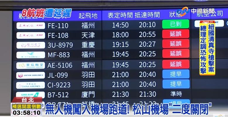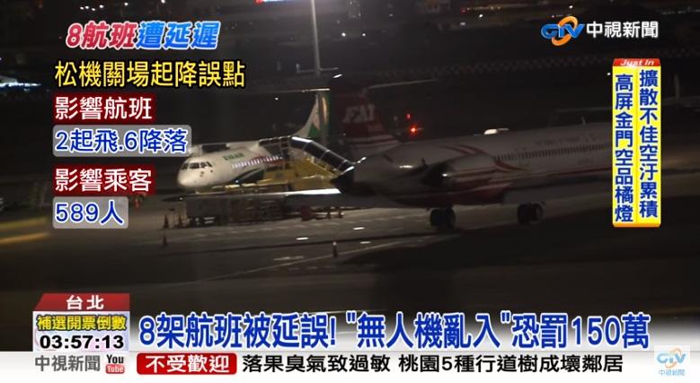 無人機兩次闖入臺北松山機場 機場兩次關閉 將罰款150萬