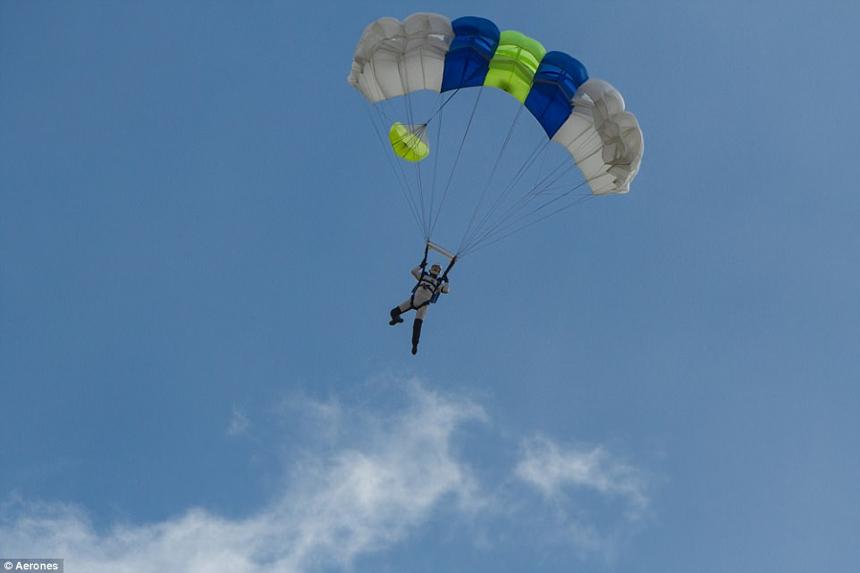 5月11日,Aerones公司使用同一架無人機,在拉脫維亞中部阿馬塔自治市一個空曠的地帶測試了從無人機上跳傘。參加跳傘試驗的運動員是因古斯·昂斯特卡恩,操縱無人機的則為普特拉曼斯。